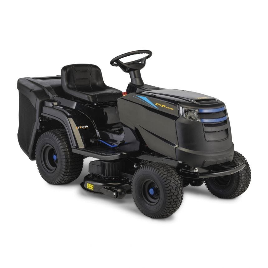 Ein 84 cm großer elektrischer Gartentraktor, der von einer 48-V-Lithium-Ionen-Batterie angetrieben wird und 45 Minuten Autonomie garantiert. Für Grundstücke bis 3000 m².